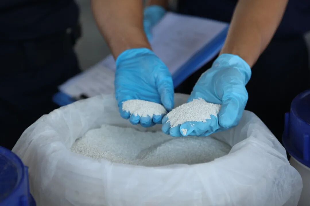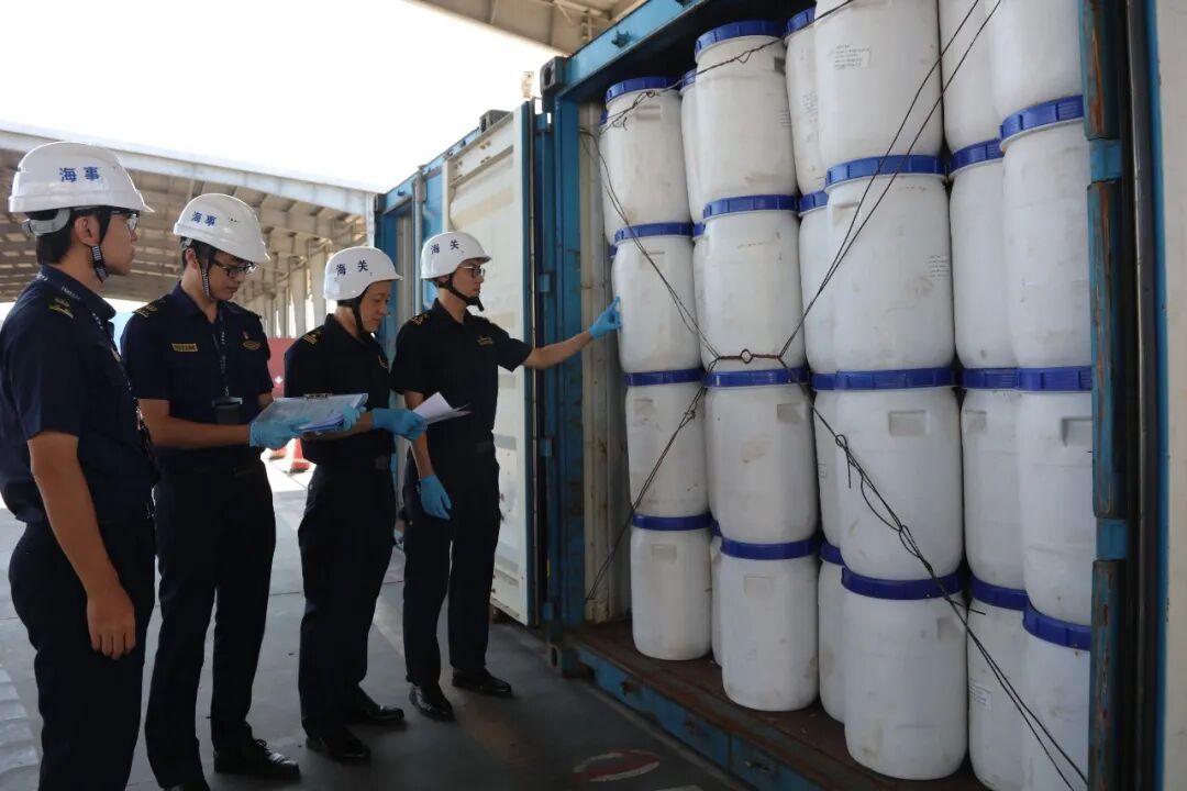 次氯酸钙为《危险化学品目录》中明确列明的第5.1类强氧化剂,遇水或潮湿空气会引起燃烧爆炸,与有机物或者碱性物质接触会引发燃烧,高温下易放热分解引起火灾或爆炸并放出刺激性的氯气。现场截获的这批次氯酸钙不仅使用了高度磨损的旧塑料桶包装,桶盖因不能有效密封还使用了膨胀螺栓固定,该货物查实之时,恰逢大连预报将因强对流天气连续三天大雨,存在着极大的安全隐患,大连海关与海事、港口、危险品场站等部门密切协作,当晚就将这批次氯酸钙转运至危险品场地的安全位置进行保管,及时消除了安全隐患,保障了大连口岸稳定的安全生产形势。