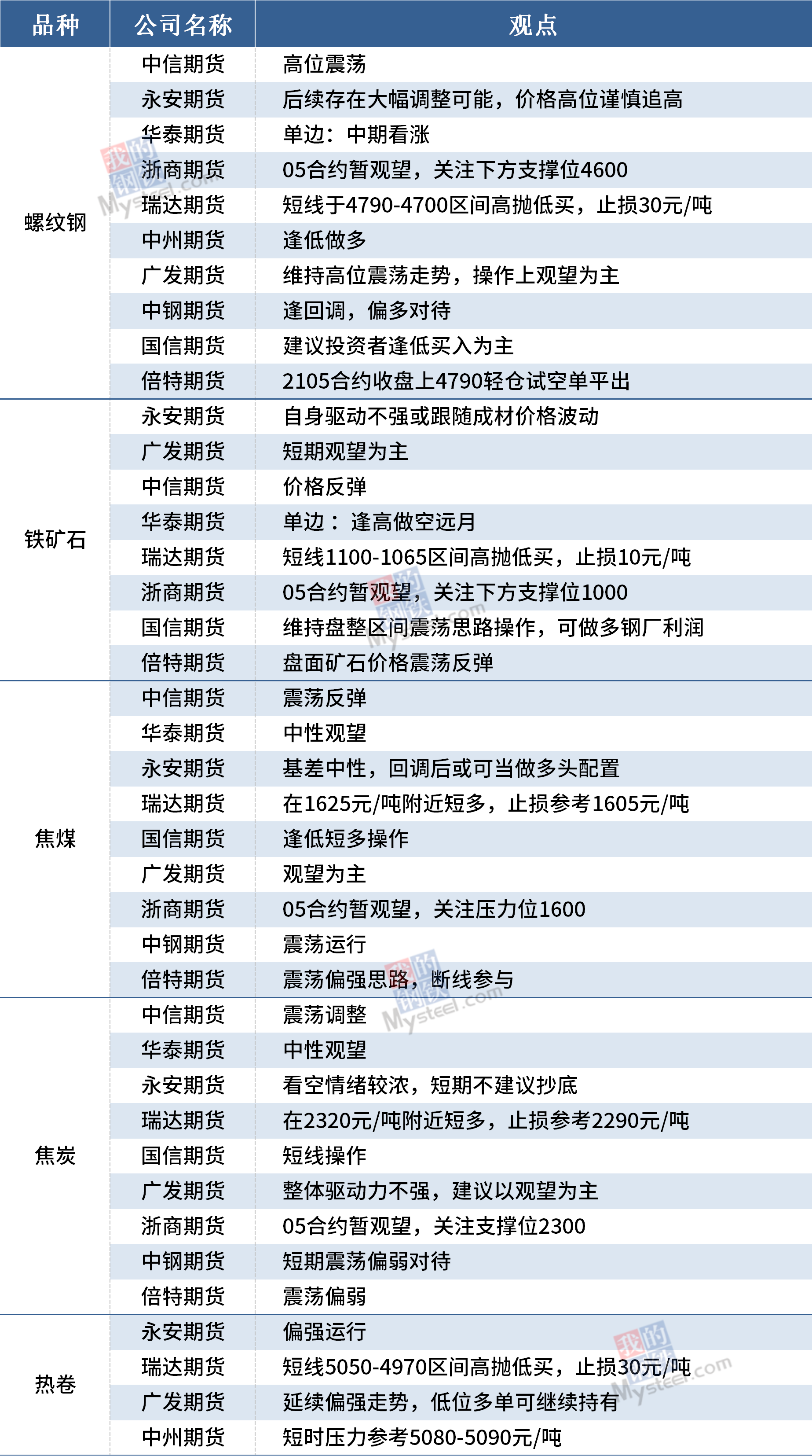 3月19日黑色期货机构观点汇总