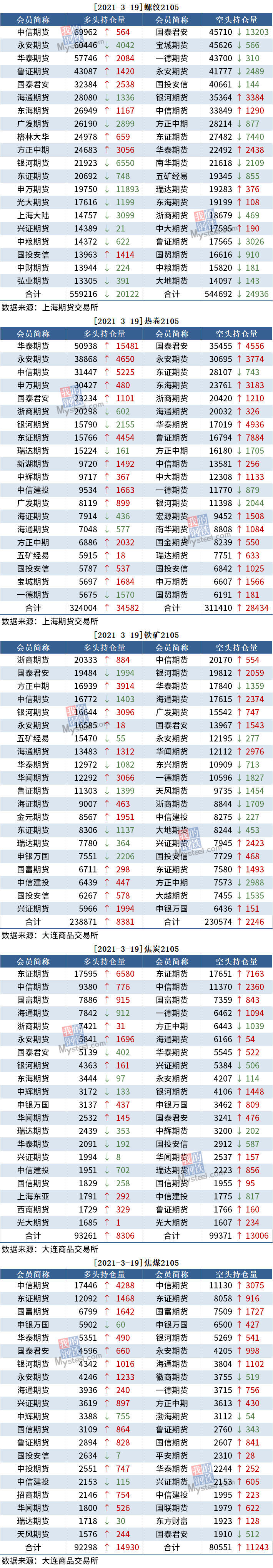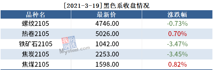 截至3月19日收盘,螺纹2105收4746,跌0.73%;热卷(5026, 35.00, 0.70%)2105收5026,涨0.70%;铁矿(1042, -37.50, -3.47%)石2105收1042,跌3.47%。