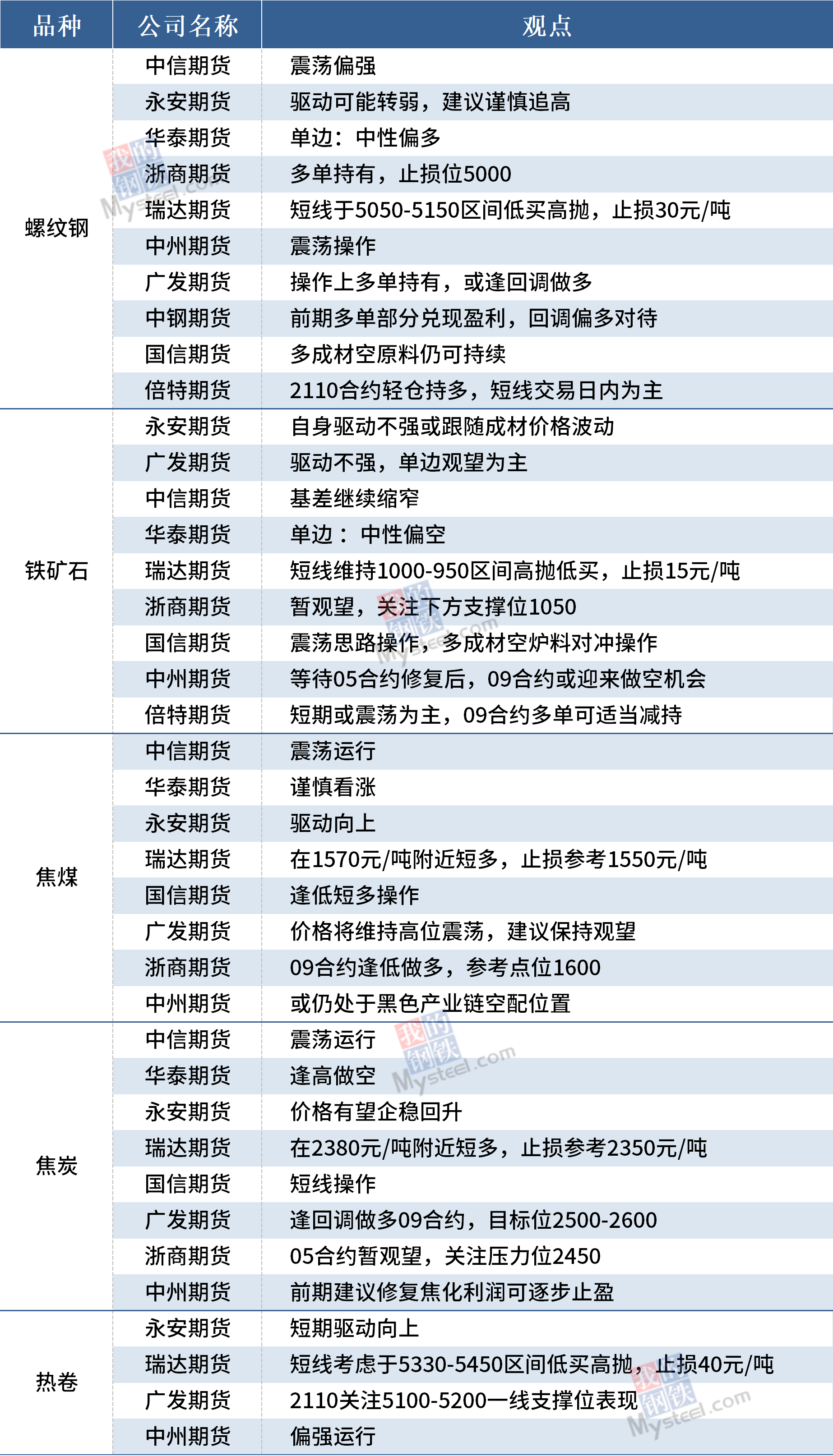 4月8日黑色期货机构观点汇总