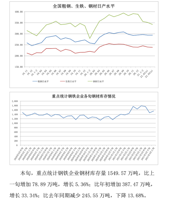 中钢协数据显示,2021年4月上旬,重点统计钢铁企业共生产粗钢2273.93万吨,生铁1960.15万吨,钢材2090.76万吨。