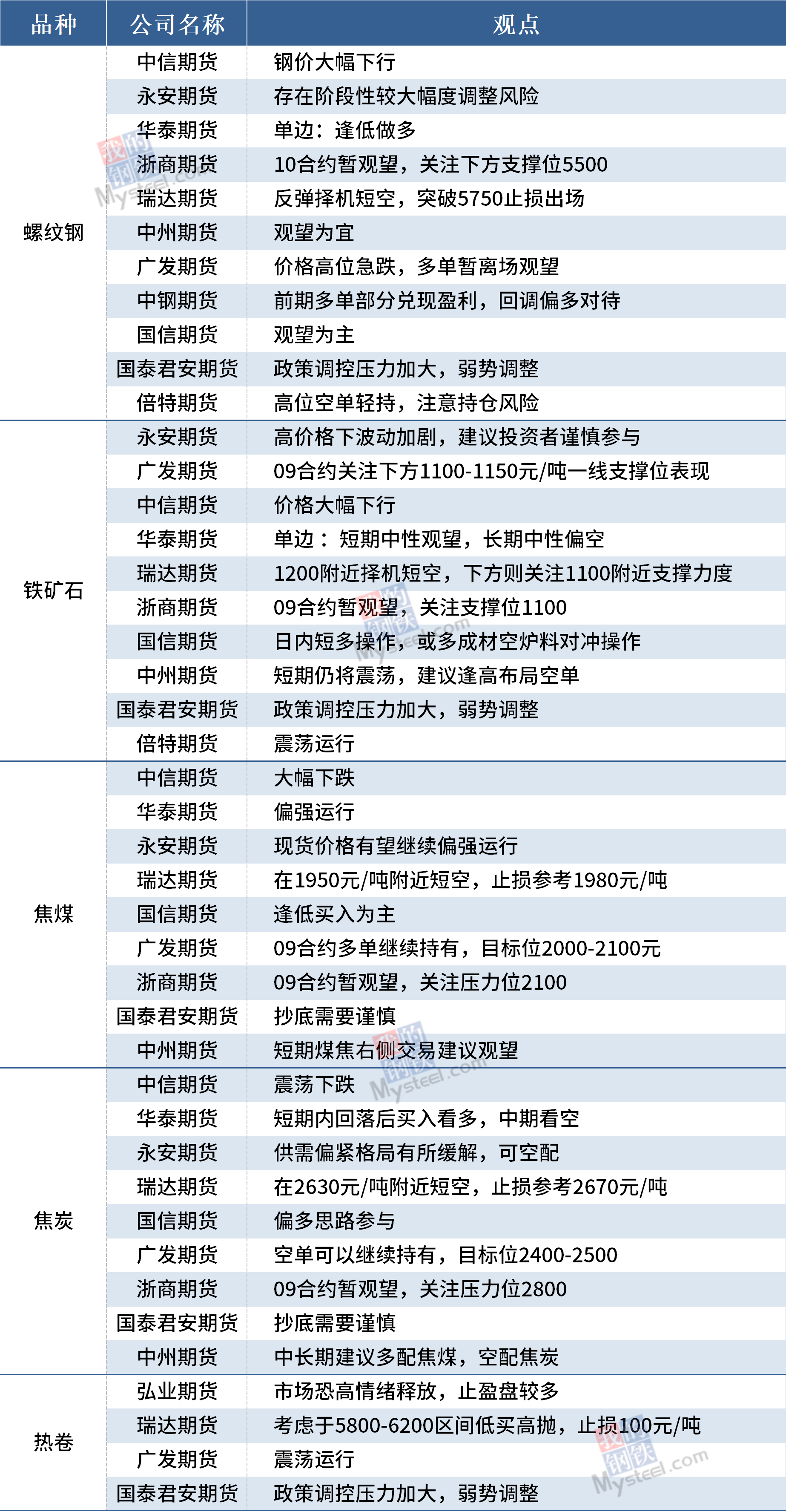 5月17日黑色期货机构观点汇总