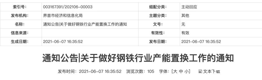 根据工业和信息化部新修订的《钢铁行业产能置换实施办法》(工信部原〔2021〕46号,以下简称《办法》,详见工业和信息化部门户网站),结合我省实际,现就我省钢铁行业产能置换工作有关事项通知如下: