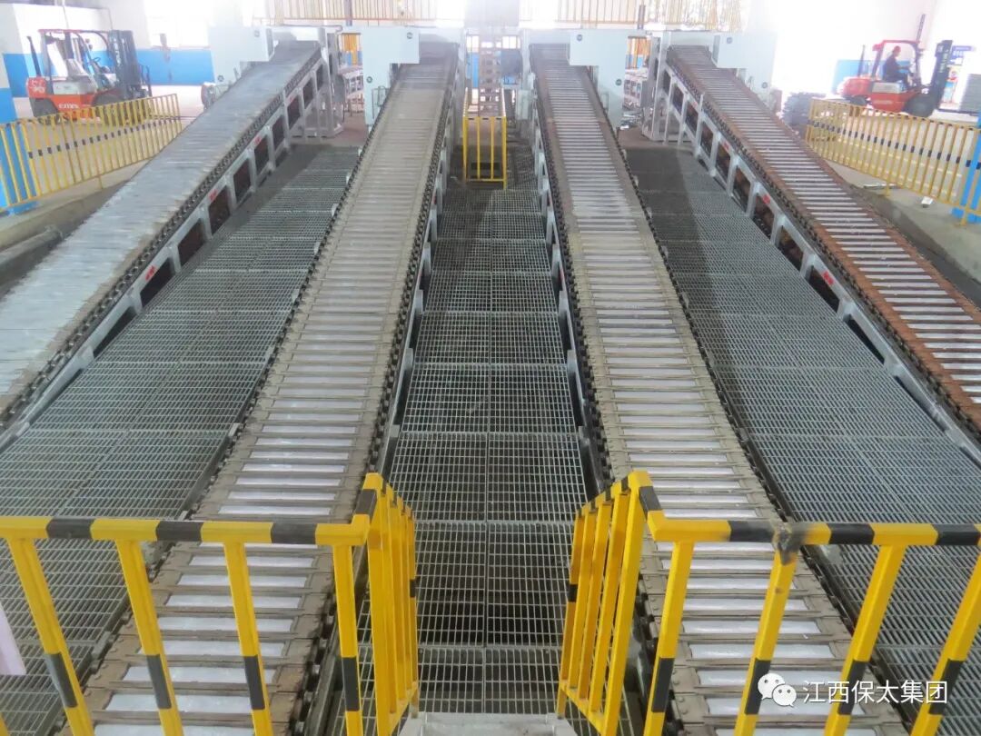 该铝合金锭生产线自动化程度高,双室熔炼炉配有蓄热式燃烧系统、铝液循环系统、有机烟气焚烧系统、自动控温系统。还采用了破碎系统、X光分选系统、自动送料系统、循环水冷却系统、激光打字、机器人自动叠锭、自动称重等先进设备,并且实现设备数据互联,打造保太集团智能制造示范线。