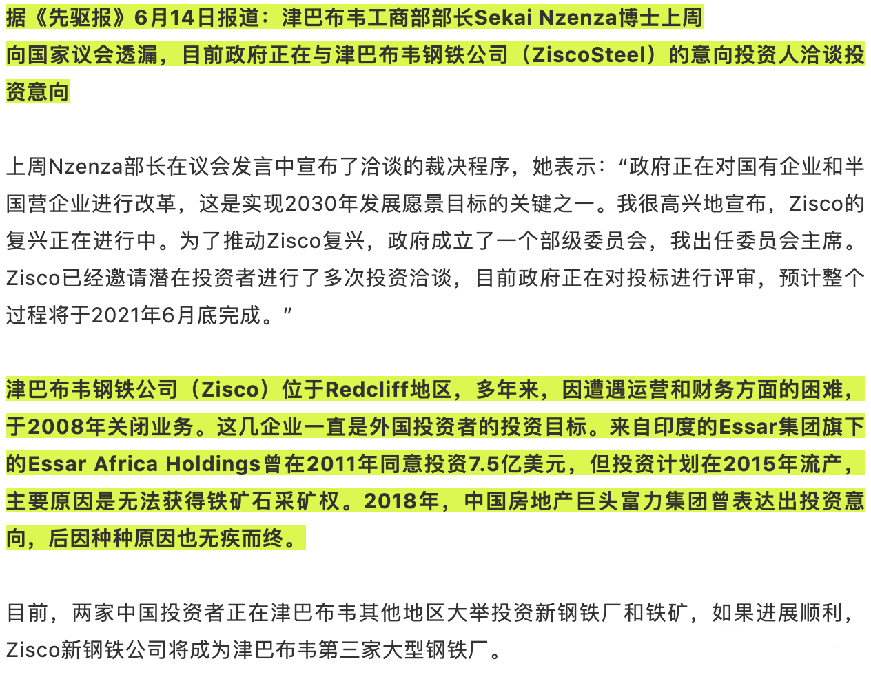 原标题:商机!津巴布韦钢铁公司估价待售中