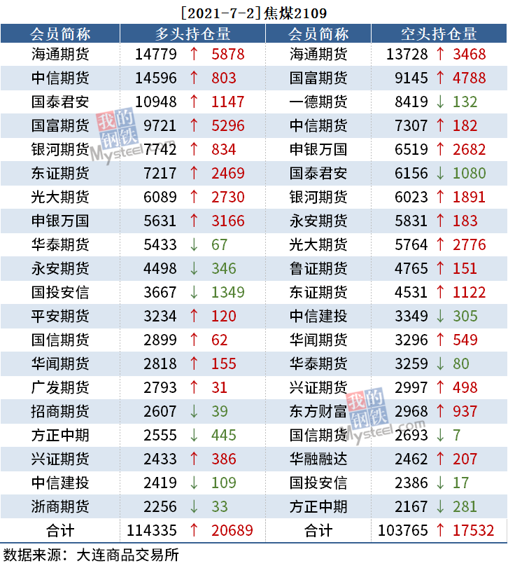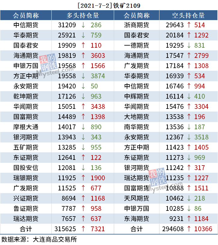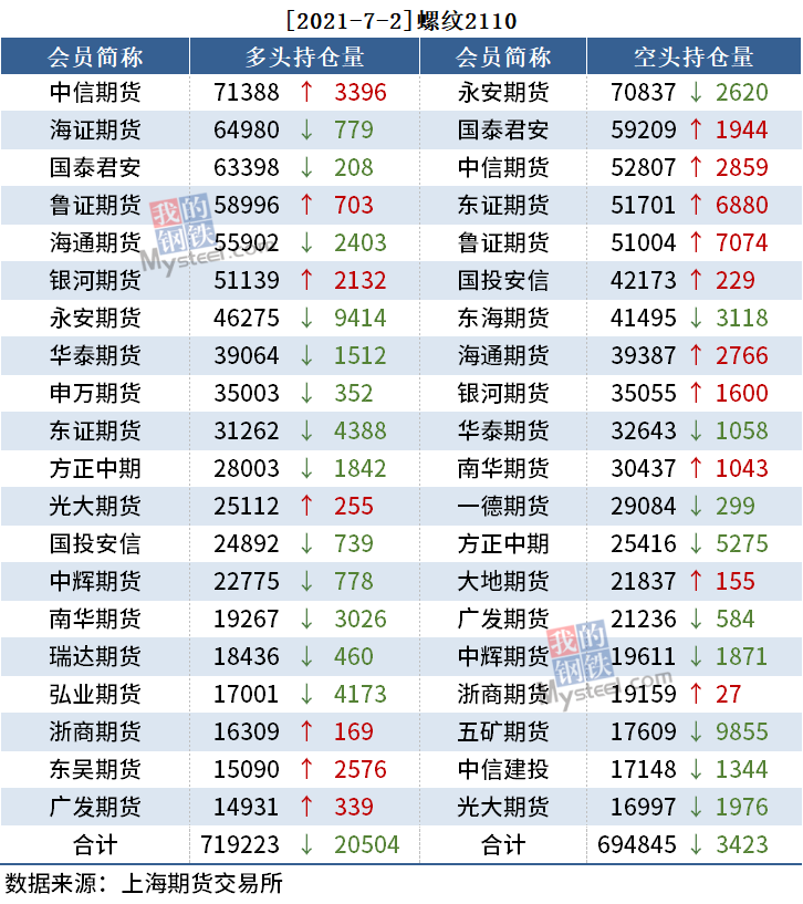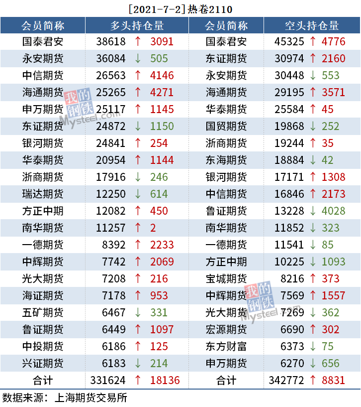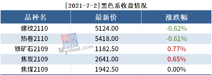 截至7月2日收盘,螺纹2110收5124,跌0.62%;热卷(5418, -33.00, -0.61%)2110收5418,跌0.61%;铁矿石2109收1182.5,涨0.77%。