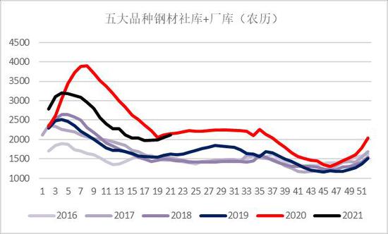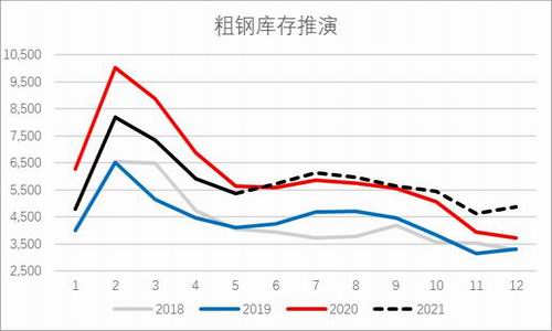 从库存看,当前6月底粗钢库存(全社会估算),将会超过2020年阳历同期。从累库时点上看,今年累库相较去年提前约1-2周。