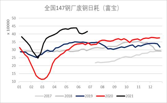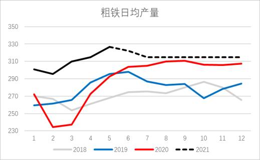需要注意的是,废钢日耗下降10%后,结合上面的铁水产量预估,这样粗钢日均产量在316万吨左右。也符合近期的市场论调,后面可能会继续有限产的相关政策,市场预计跟去年6-12月持平。