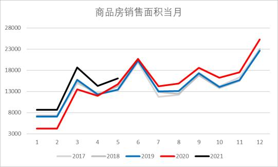 5月,房地产开发投资当月同比增速为9.84%;商品房销售面积当月同比增速为9.15%;100大中城市的土地成交面积当月同比为-23%;房屋新开工面积当月同比增速-6.07%,降幅略有收窄。