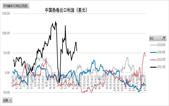 4月底到5月初,钢材价格加速上涨,除了限产全国铺开的预期,海外钢材的高价及海外需求的拉动,是钢材上涨的第二驱动。当时热卷出口利润最高达近130美金。