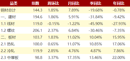 2. 线材库存下降速度有所放缓,螺纹钢(5428, 18.00, 0.33%)库存上升速度有所加快;热轧卷板库存上升速度有所放缓,冷轧库存上升速度有所加快,中厚板库存上升速度略有放缓