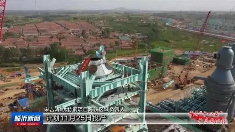 临沂钢投年产270万吨优特钢项目炼铁区域负责人 宋吉涛:高炉作为整个区域的核心部位,起着承上启下的作用,封顶之后主要以辅助设施、炉顶设备安装为主,计划11月25日投产。