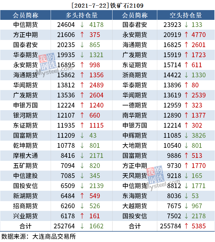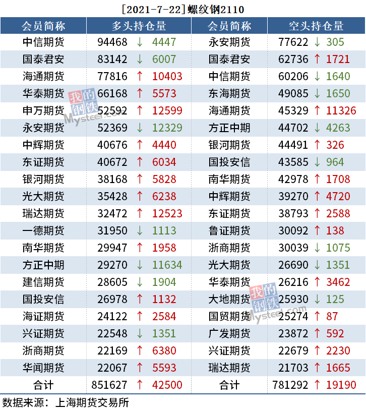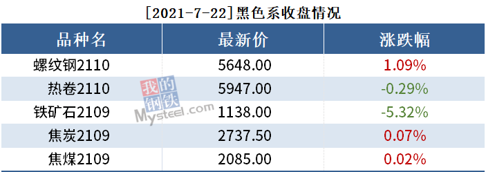 截至7月22日收盘,螺纹2110收5648,涨1.09%;热卷(5947, -17.00, -0.29%)2110收5947,跌0.29%;铁矿石2109收1138,跌5.32%。