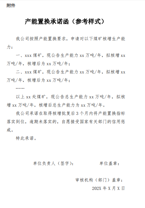为扎实做好迎峰度夏度冬煤炭保供工作,推动优质先进产能加快释放,保证煤炭稳定供应,现就实行核增产能置换承诺有关事宜通知如下: