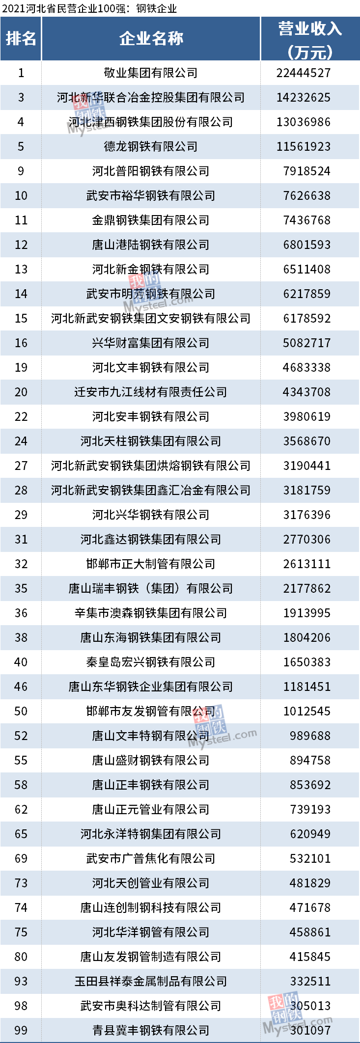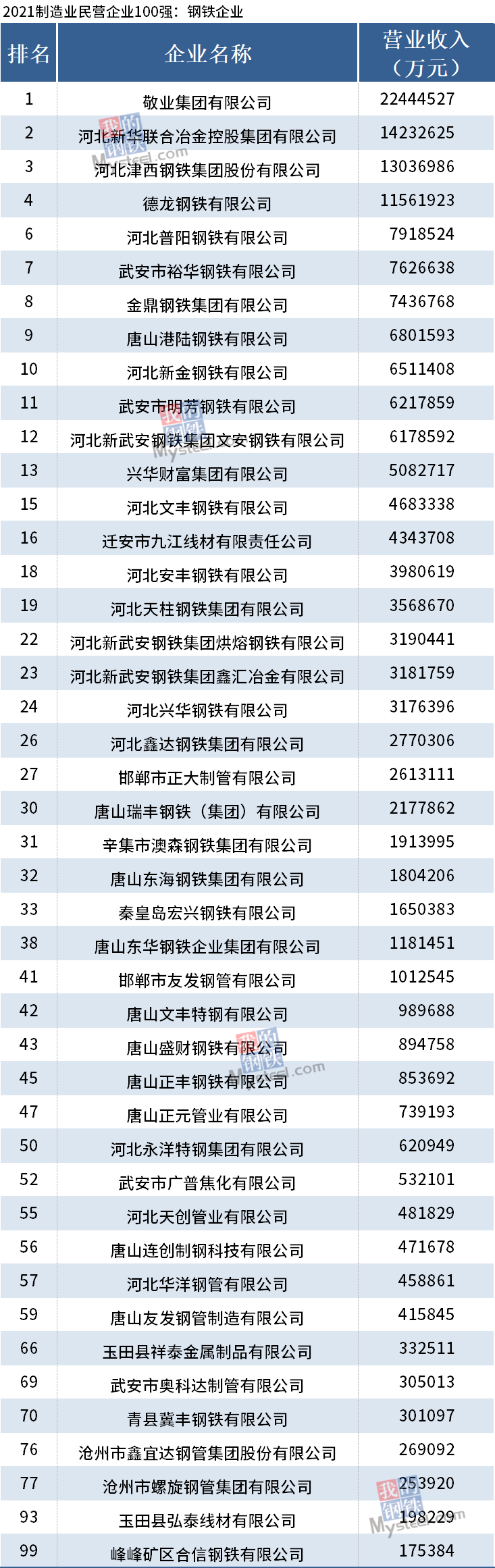 据统计,钢铁行业总计40家企业上榜2021河北省民营企业100强,44家企业上榜制造业民营企业100强。其中,敬业集团有限公司位列河北省民营企业100强榜单第一和河北省制造业民营企业100强榜单第一,也是河北省唯一一家突破2000亿的民营企业。