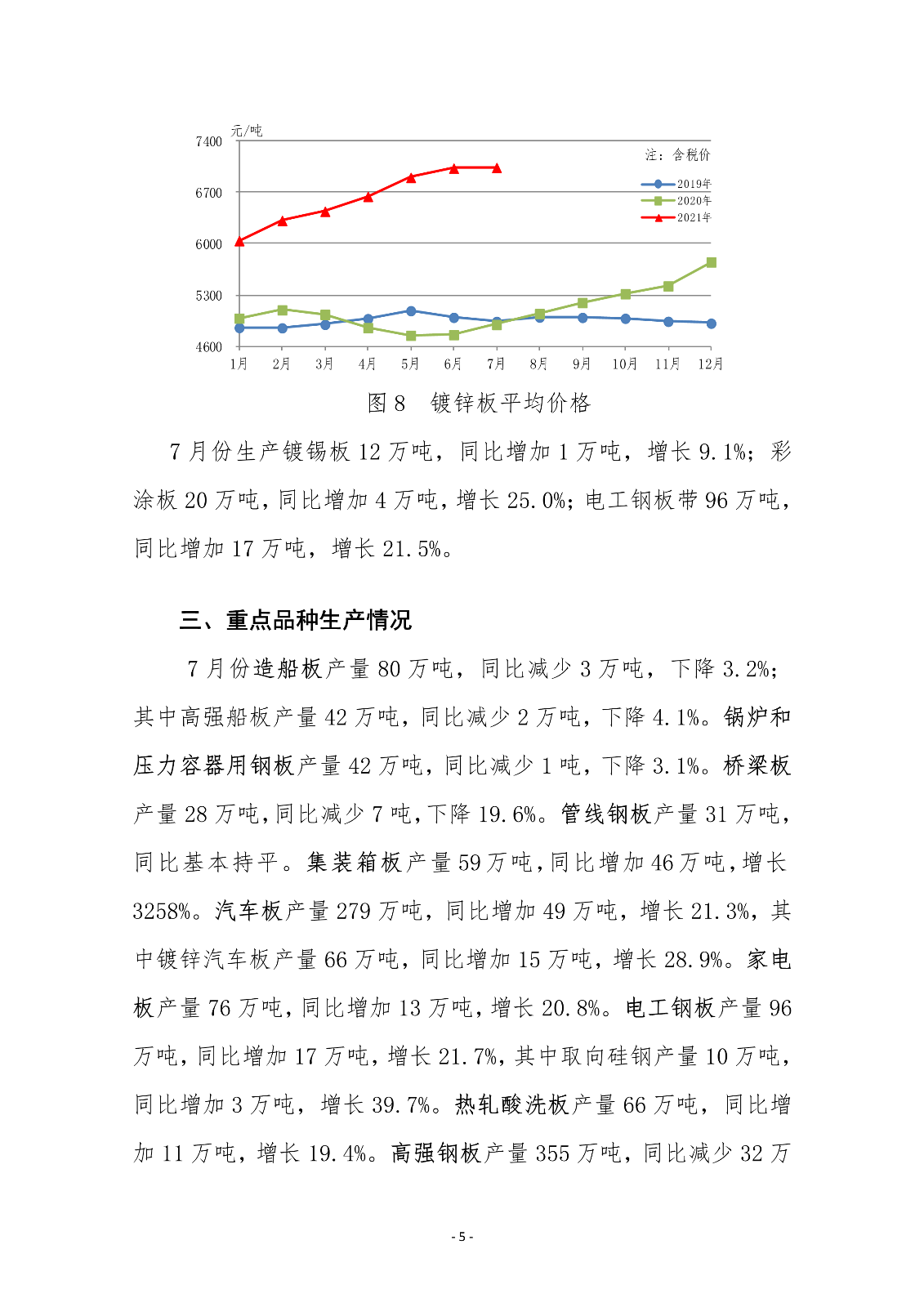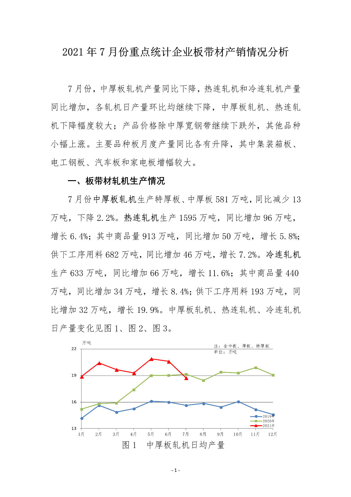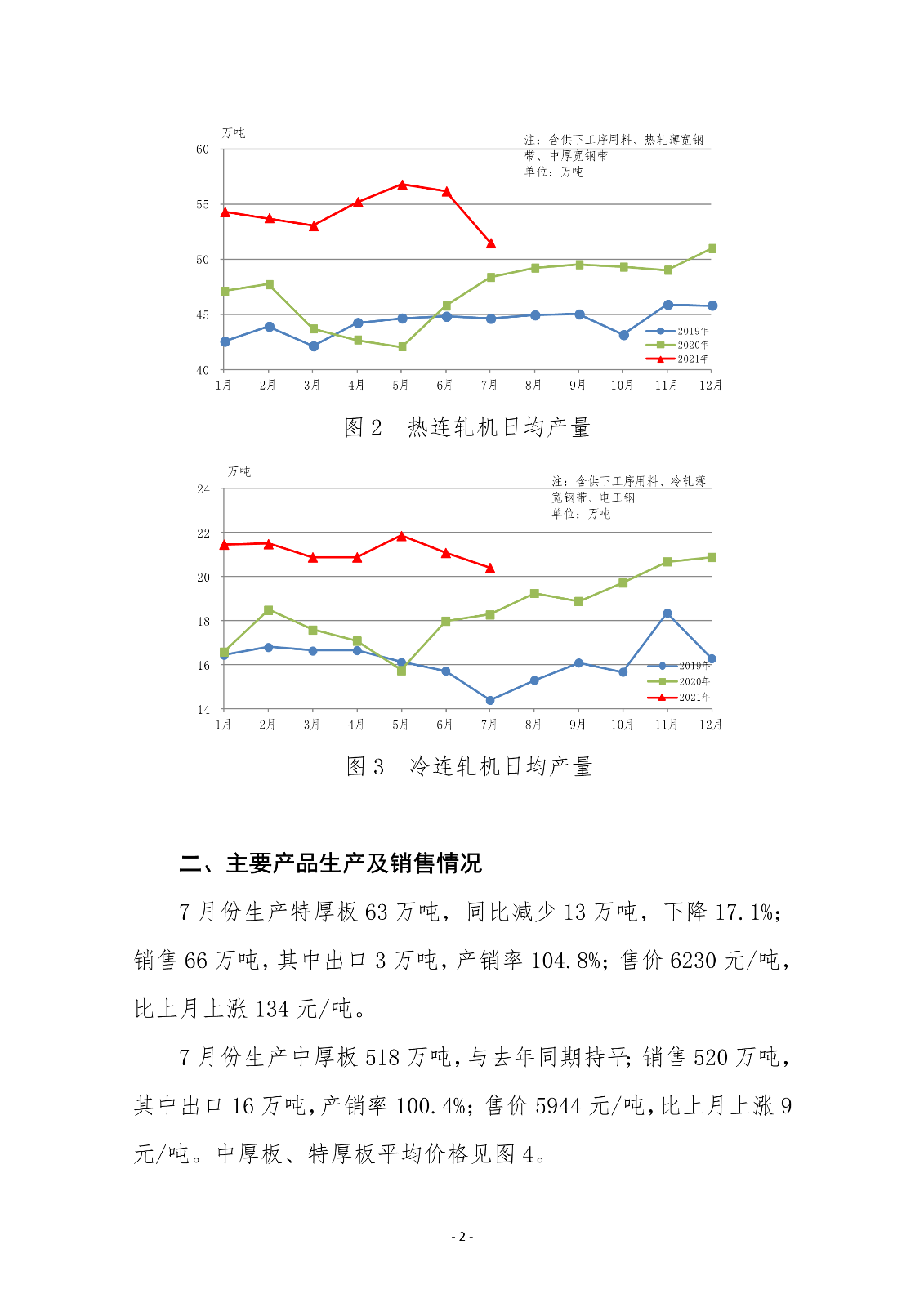 7月份,中厚板轧机产量同比下降,热连轧机和冷连轧机产量同比增加,各轧机日产量环比均继续下降,中厚板轧机,热连轧机下降幅度较大。
