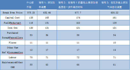 表1不同技术改造下的炼钢成本 (单位:美元/吨)