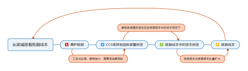 南华期货研究所研究表明,碳减排实施将影响炼钢成本,主要的逻辑链条是:以高炉为主的炼钢装置需要添加犹如CCS、顶部气体回收等设备进行碳回收,这就需要钢铁企业进行相应的固定资产投资,这部分投资反馈在炼钢成本中,占比一般在25%左右,意味着,假设原材料采购成本、人力成本以及其他成本都不变的情况下,炼钢成本将随着碳回收设备投资的增加而增加。