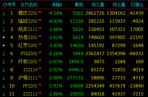 10月12日,期市午盘收盘涨跌互现。动力煤(1508, 150.00, 11.05%)、苹果(7144, 405.00, 6.01%)期货封涨停,焦煤(3466, 165.50, 5.02%)涨超5%,焦炭(3779, 161.50, 4.46%)涨超4%,纯碱、甲醇(4054, 128.00, 3.26%)涨超3%;跌幅方面,螺纹、锰硅(12338, -518.00, -4.03%)跌超4%,热卷(5624, -211.00, -3.62%)、纸浆、红枣(14650, -520.00, -3.43%)主力合约跌超3%。