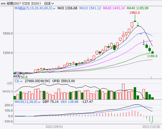 动力煤方面,跌势仍然延续。昨日,动力煤主力合约2201盘中一度逼近1200元/吨一线,创近一个月低位,截至收盘跌7.73%,收报1237元/吨。成交量续降至6.25万手,持仓量降至3个月低位。