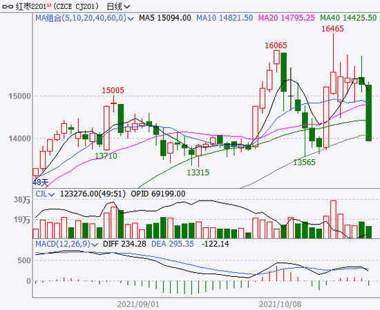 随着新季红枣开始集中下树,前期减产题材逐渐落地,昨日红枣盘面出现深度回调,主力2201合约跌停,跌幅10.01%,报13940元/吨。