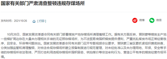 此外,国家发改委昨日会同有关部门部署煤炭产地存煤场所清理整顿工作。
