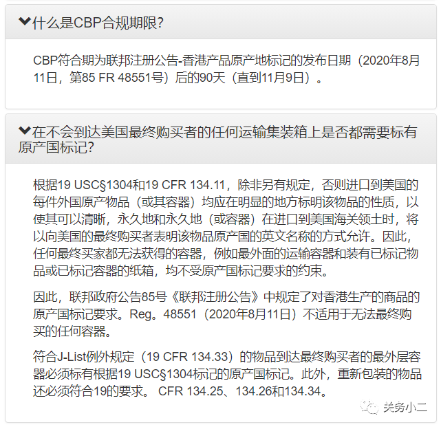 CBP关于香港商品标记指南(常见问题)地址: