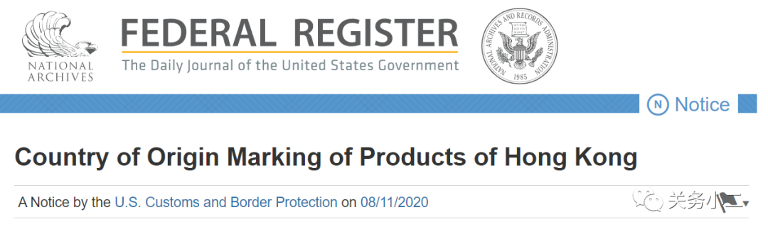 2020年8月11日,美国海关与边境保护局(下称CBP)发布了联邦公报通知,要求2020年9月25日起,原产自香港的货物出口到美国必须标明来源地是“中国”,而不能再贴“香港制造”标签。随后,美方应一些业界的要求,将该措施的实施日期延后45天,即推迟至2020年11月9日实施。