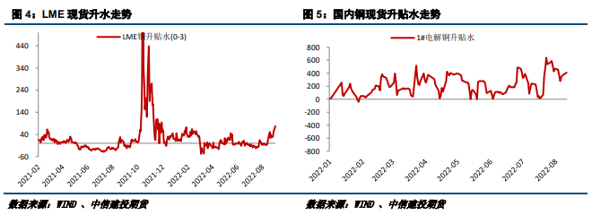 在库存持续去化的背景下,铜现货升水也迎来高位。国内现货升水早已回到400元/吨的高位水平,最高达到640元/吨,而LME现货也由8月中旬以前的贴水状态转为升水,并且一路走高,已经来到正常状态的峰值水平。