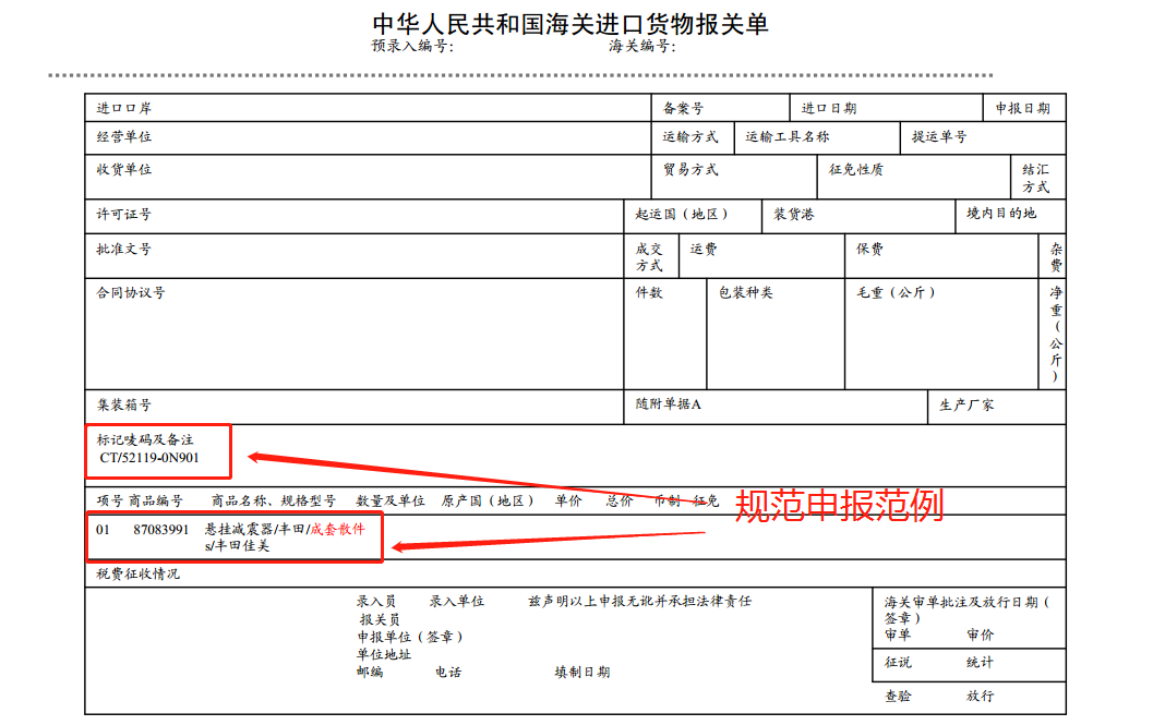 四、进口货物收货人申报进口维修件应当符合以下填报要求: