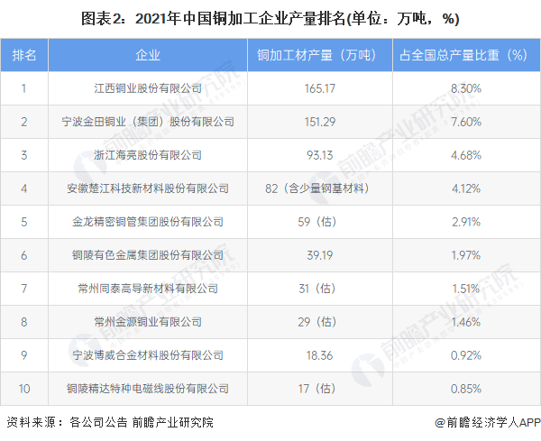 本文核心数据:铜加工行业竞争派系;企业布局;竞争状态等