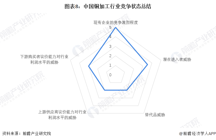 从五力竞争模型角度分析,目前我国铜加工行业竞争情况如下: