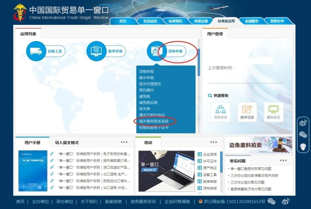 中国国际贸易“单一窗口”标准版“免于到场协助查验”模块位于“货物申报-海关事务联系系统”内,具体位置见上图。