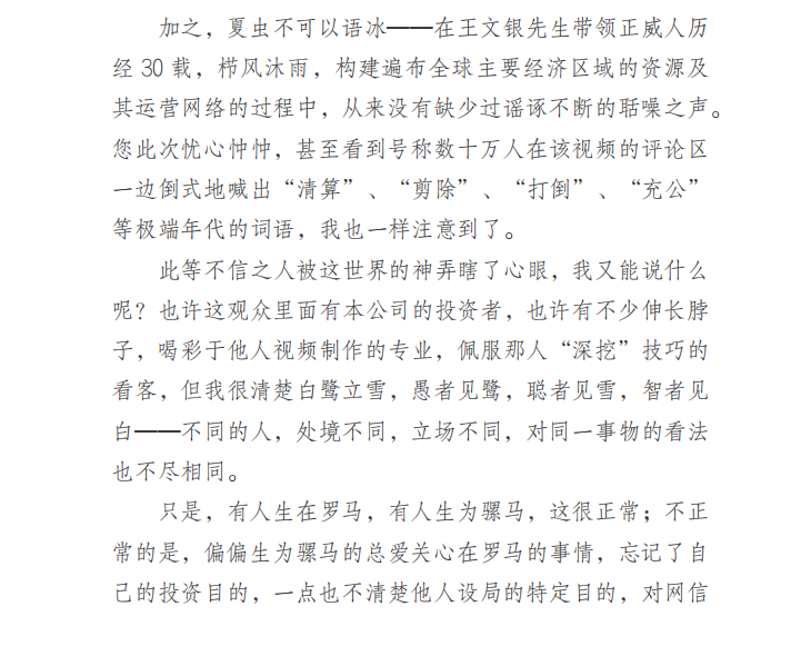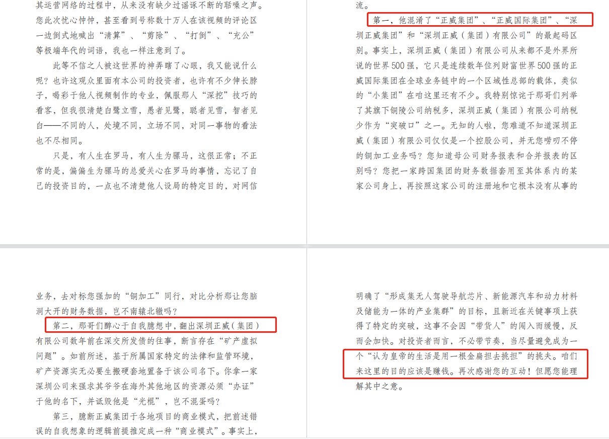 对于这个问题,正威新材董秘曹亚伟用一篇3000多字的长文进行了回应。