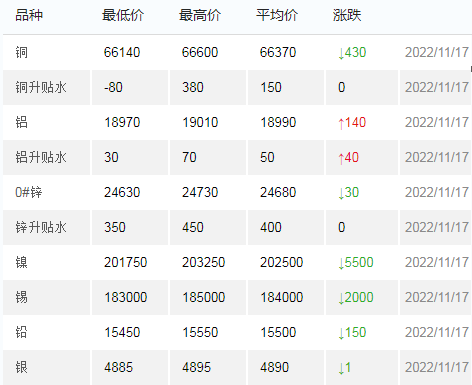 11月17日上海有色金属交易市场价