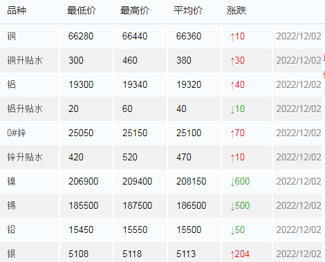 12月2日上海有色金属交易市场价