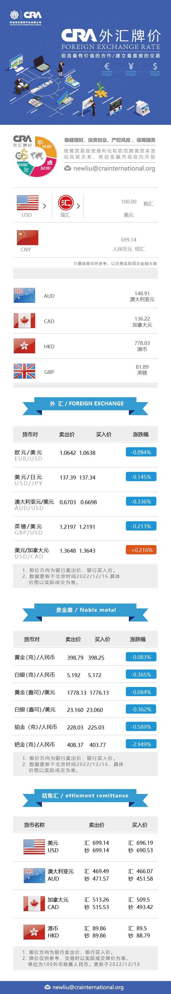 12月16日CRA贵金属及外汇市场价