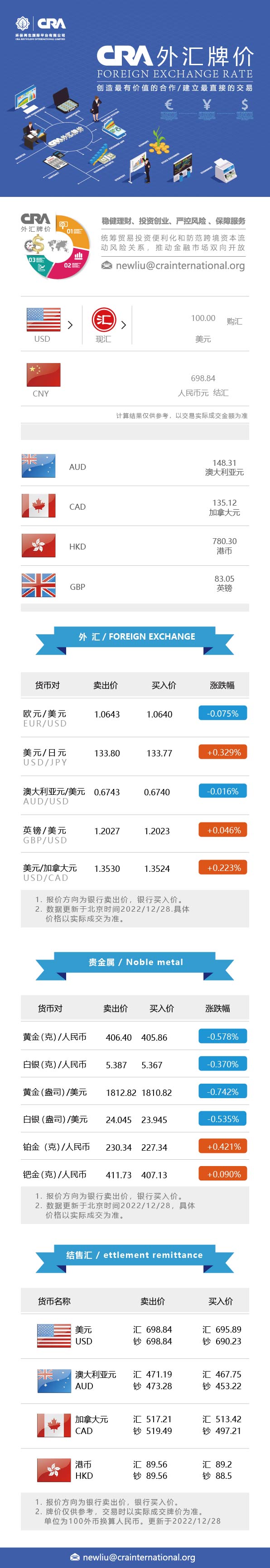 12月28日CRA贵金属及外汇市场价