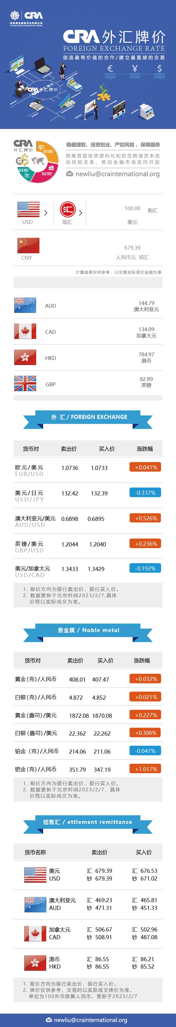 2月7日CRA贵金属及外汇市场价