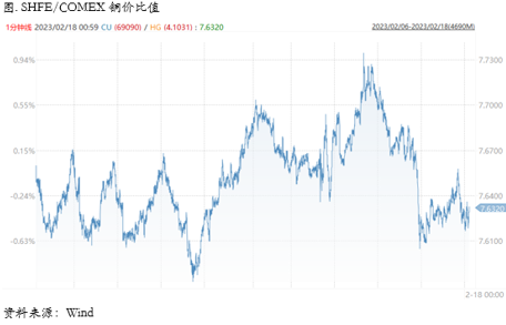 SHFE/COMEX上周比价宽幅震荡。我们此前多次指出,比价近期反弹逻辑变弱,整体没有一个处于支配地位的逻辑,我们认为接下来仍然会出现这样的情况。主要目前需求有所恢复,但是距离真正的复苏还需要一段时间传导,国内社会库存去化的拐点并未到来,保税区的库存也处于小幅累库的过程当中,并且还会有所持续,这也会体现在比价上。并且在这种情况下,后续库存更倾向于累积,而不是进一步去库,因此进口利润可能未必需要给到窗口打开的状态,加之近期保税区库存有所累积,因此比价可能暂时失去主逻辑,更多跟随汇率、已经绝对价格本身的波动率而波动。