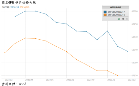 上周SHFE铜价震荡偏强,触及69000元/吨关口,铜价表现整体偏强。上周国内消费进一步恢复,中观数据显示出行、二手房成交等都在进一步走强。部分城市二手房成交火热,甚至已经超过2021年同期水平,虽然整体消费仍然有进一步回暖的空间,但是局部的复苏也让市场看到更多希望。上周精炼铜消费复苏明显,下游采购积极性显著回升,虽然周内精炼铜没有去库,但是对后续去库仍然有较强的预期。此前国内1月社融数据出台后市场反应平静,但我们认为该数据其实并不弱,企业中长期贷款继续增加,对应到基建、制造业上应该不差,而居民部门依然较弱,但是从近期的房屋成交来看,居民部门加杠杆的能力没有问题,只是需要等待信心的修复。整体而言对于铜价我们仍然看涨。