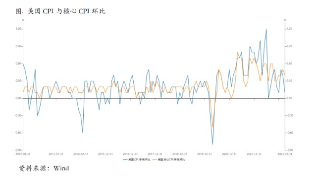 宏观方面, 美国3月未季调CPI同比升5%,预期升5.1%,前值升6%;环比为0.1%,低于预期的0.2%。核心CPI同比为5.6%,符合预期,高于前值的5.5%,环比为0.4%,符合预期,低于前值的0.5%。