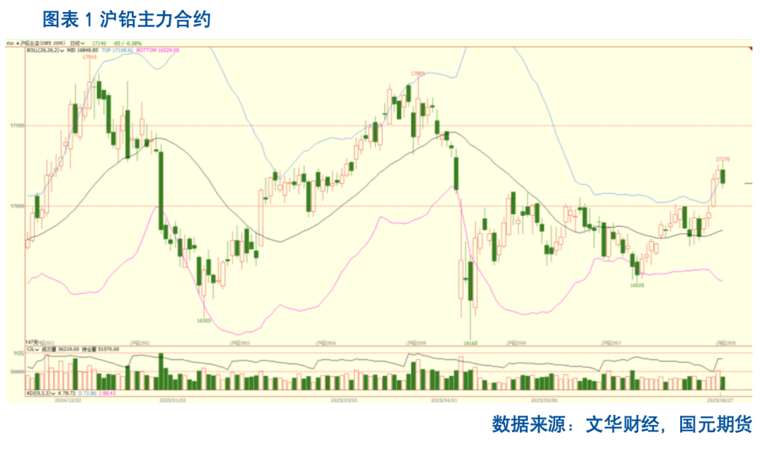 随后4月铅下游淡季影响逐步显现,同时,美国关税政策超预期打压出口需求,需求端支撑松动,基本面和宏观共振致铅价大幅下行。5月中旬,中美关税政策缓和,但对铅蓄电池实际出口提振有限,而国内终端需求仍处于淡季,需求疲软拖累下,铅价震荡偏弱。进入6月后,下游需求回暖,但再生铅生产受环保限产影响,复产情况不及预期,铅锭基本面收紧带动铅价震荡上行。