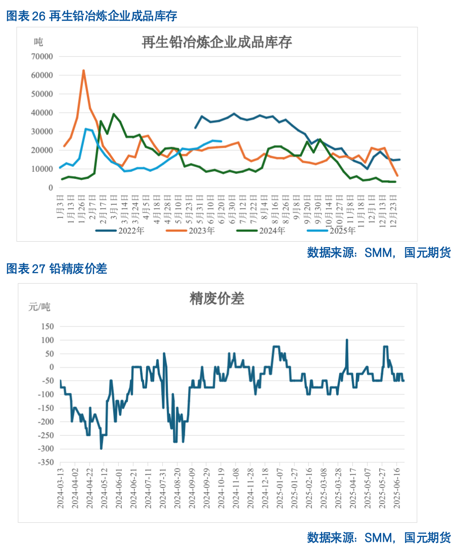 再生铅方面,再生铅产量可能呈现三季度增产,四季度减产的趋势。