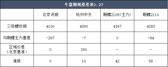 【2021年1月27日,杭州阴,中天螺纹价格4340元/吨,中天盘螺价格4460/吨,杭州螺纹库存52.4万吨,昨天螺纹出库1.0万吨!】