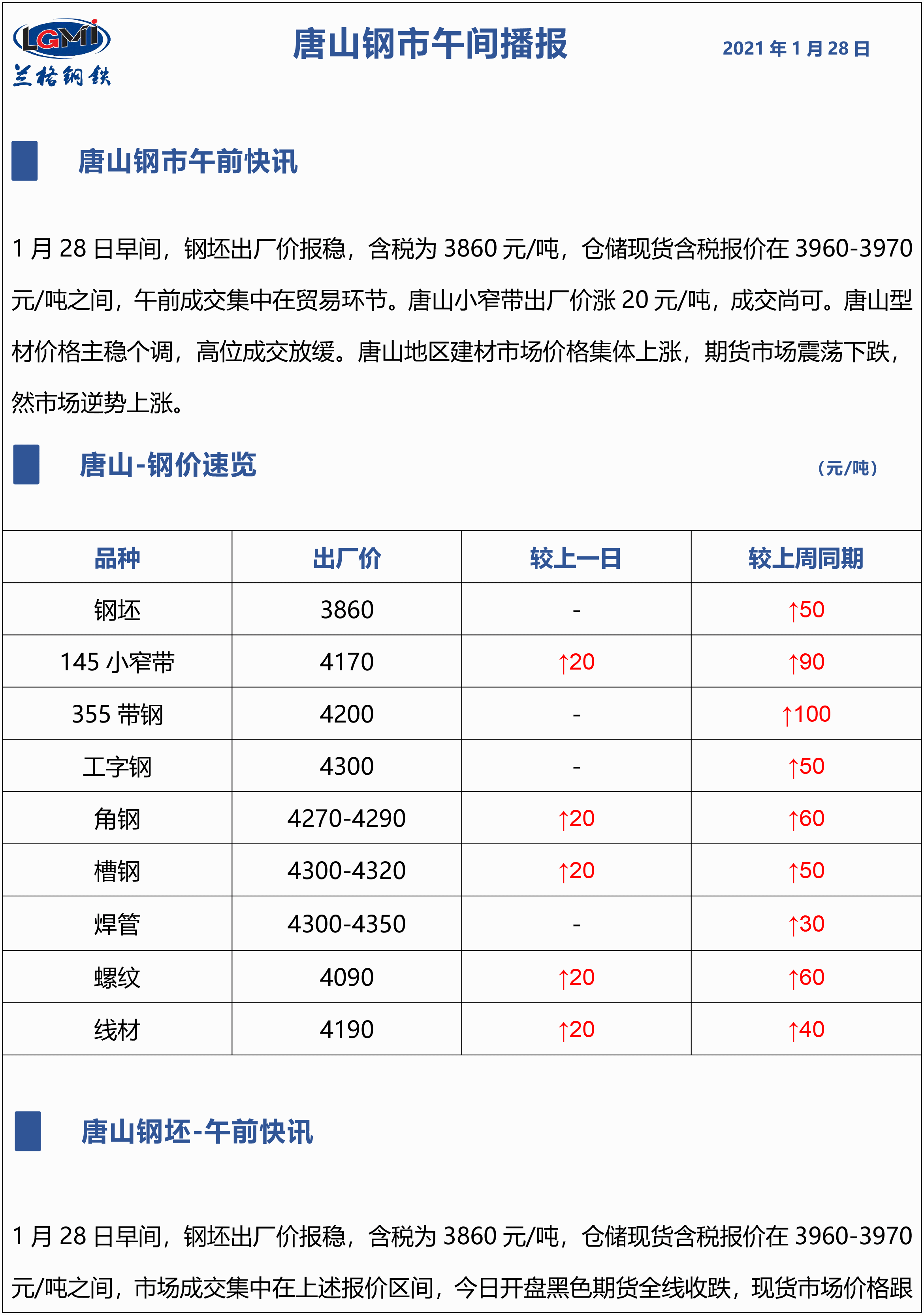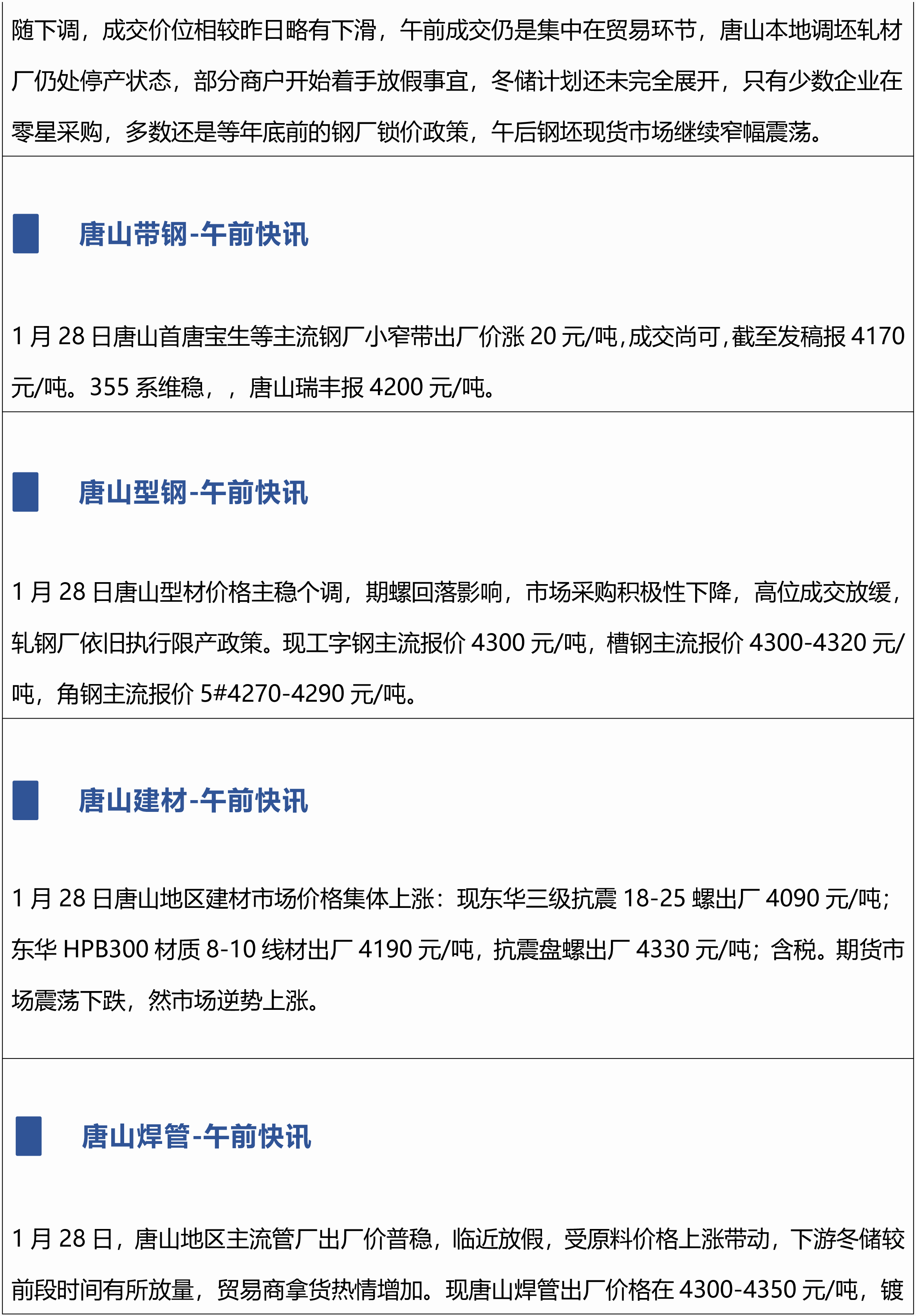 原标题:1月28日兰格唐山钢市午间播报