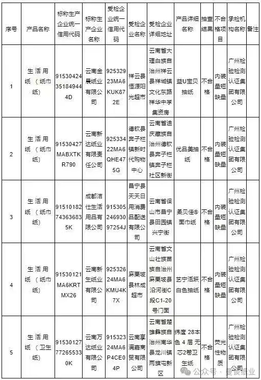 2025年,云南省市场监督管理局按照年度工作计划,在全省范围内开展了生活用纸等产品质量监督抽查,现将主要情况通报如下: